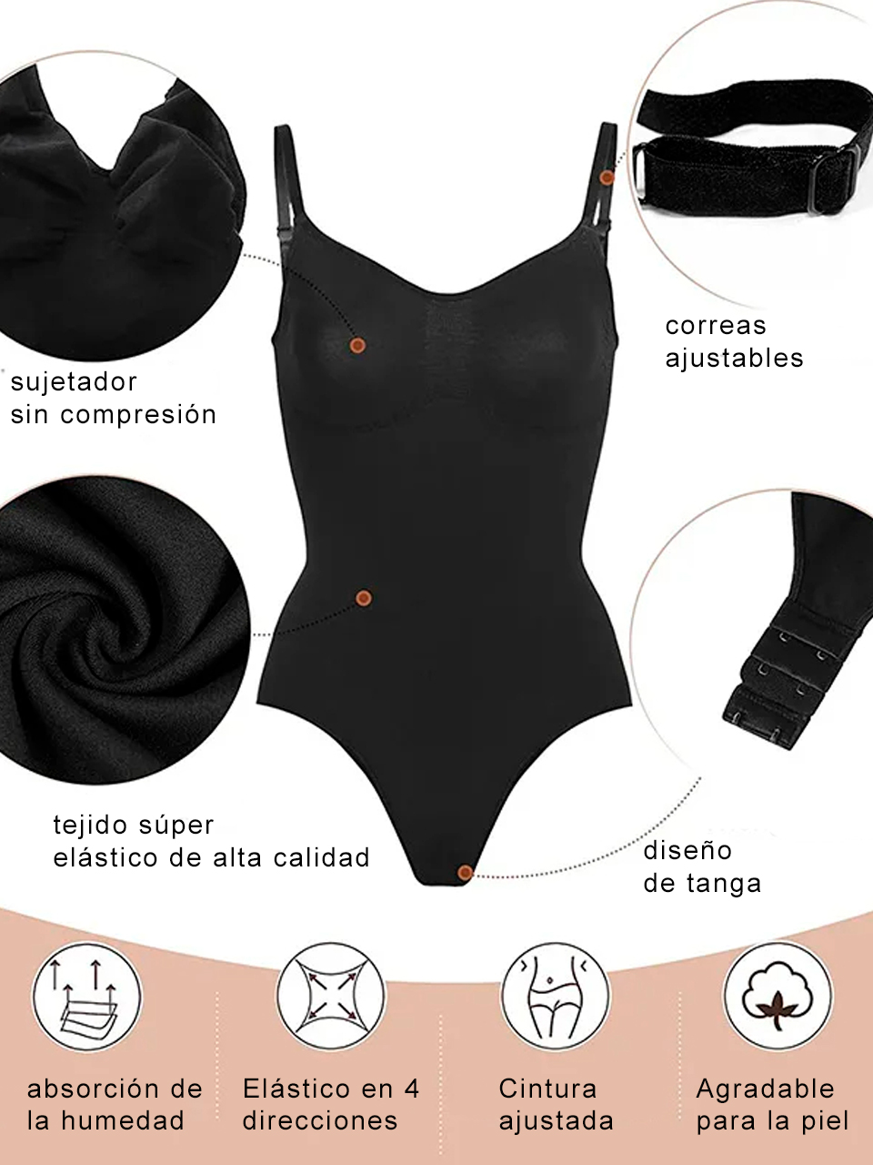 * Sostiene todas las áreas específicas para una figura correcta, brindando una sensación de confort y seguridad en todo momento.